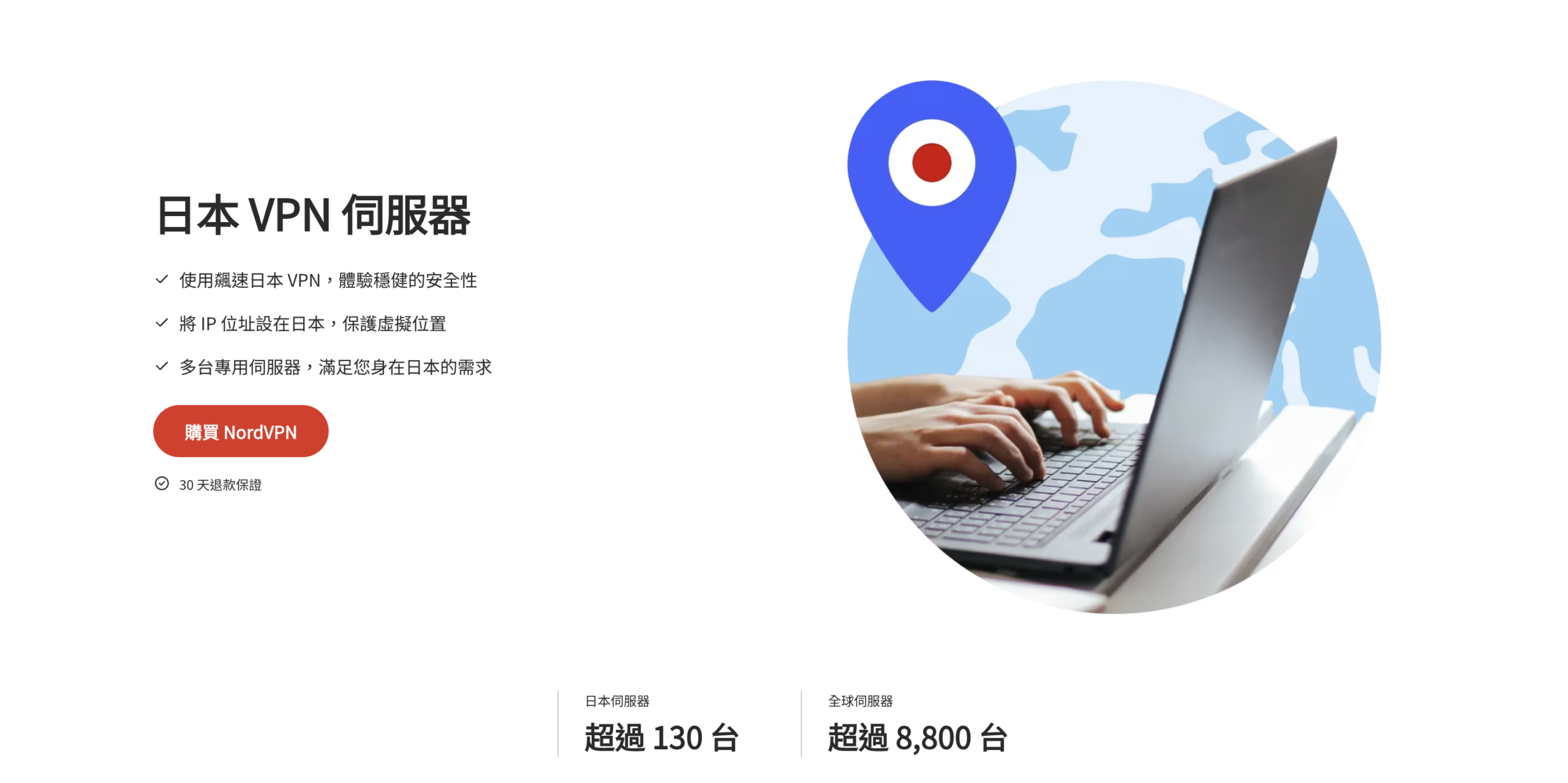 NordVPN 是一款卓越的日本 VPN,我發現它是最好用的。它在日本設有超過130台頂級伺服器,覆蓋東京和大阪等地區,使用 NordVPN 可以輕鬆遊玩日本遊戲、觀賞日劇,對於跨區觀賞 Netflix 日本內容也非常順暢。此外,NordVPN 提供絕對的安全性保障,不保留用戶資料和瀏覽歷史,並且內置功能可以自動過濾廣告和惡意網站。它支援多種主流平台,包括 Windows、macOS、Android、iOS、路由器、Playstation 和 Nintendo Switch。在速度方面,NordVPN是市面上公認最快的VPN,目前還提供30天全額退款保證。