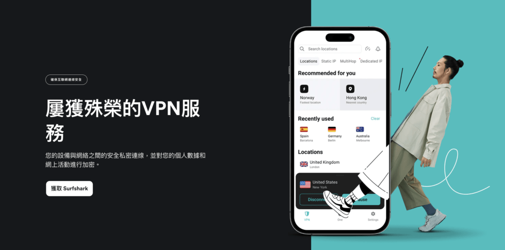Surfshark是一個功能強大、速度快、價格合理的VPN公司,與NordVPN一樣,也有繁體中文介面,也可以解鎖串流媒體,如Netflix、ViuTV等,在香港也是十分熱門的選項。其最大賣點是一個VPN可以在無限設備上同時連接,同時價格也非常實惠,入門版每月只需HK$17,可以說是性價比最高的VPN。