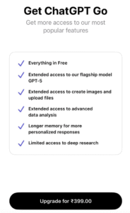 ChatGPT Go是OpenAI最新推出的低價訂閱方案,目前僅限印度及印尼地區申請。它比免費版功能更強大,包含更高的訊息與圖像生成額度、更快的回應速度、更大的檔案上傳容量,以及更多進階數據分析工具。此外,它的記憶體與上下文長度也比免費版長,能提供更個人化的回應。以下將分享如何跨區低價訂閱ChatGPT Go。