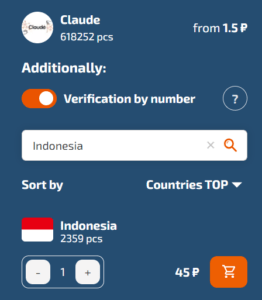 2. 在左側邊欄的搜索框中,輸入「Claude」及點選「Verification by number」、「Indonesia」