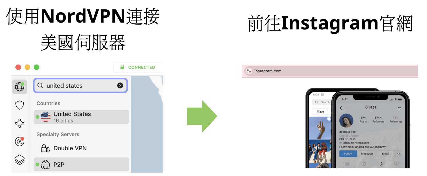 如果你身處中國大陸,想使用Google/Youtube/Instagram/FaceBook,你可以透過使用虛擬專用網路(VPN),連接到其他國家的伺服器,例如美國、澳洲、日本等地區,並隱藏你的真實IP地址,順利使用Google/Youtube/Instagram/FaceBook。以下市面上最好的VPN: